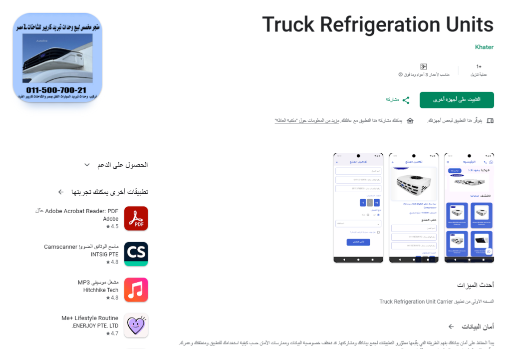 - Truck Refrigeration Units App: تطبيق متخصص في خدمات النقل المبرد وإيجار السيارات المبردة، يخدم أصحاب المطاعم وشركات الأغذية.